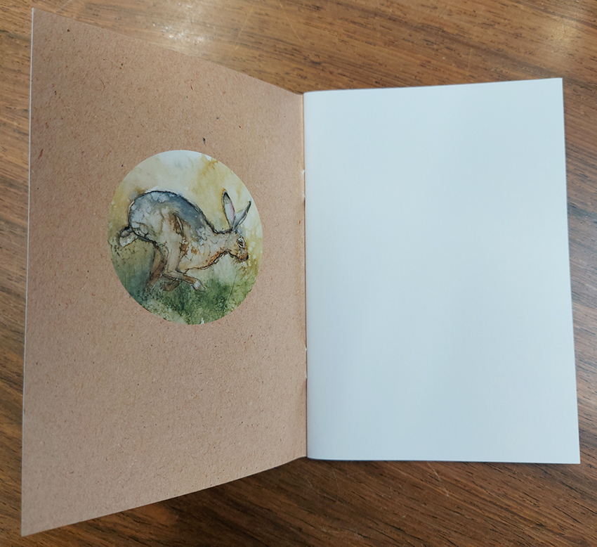A6 notebook with printed covers and 40 pages of blank uncoated paper for your notes.
